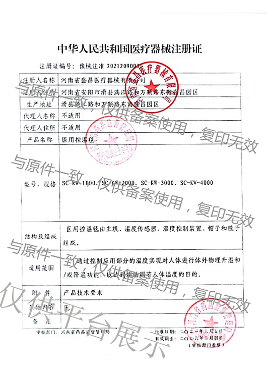 產(chǎn)品名稱 : | SC-KW-4000型 醫(yī)用控溫毯 |